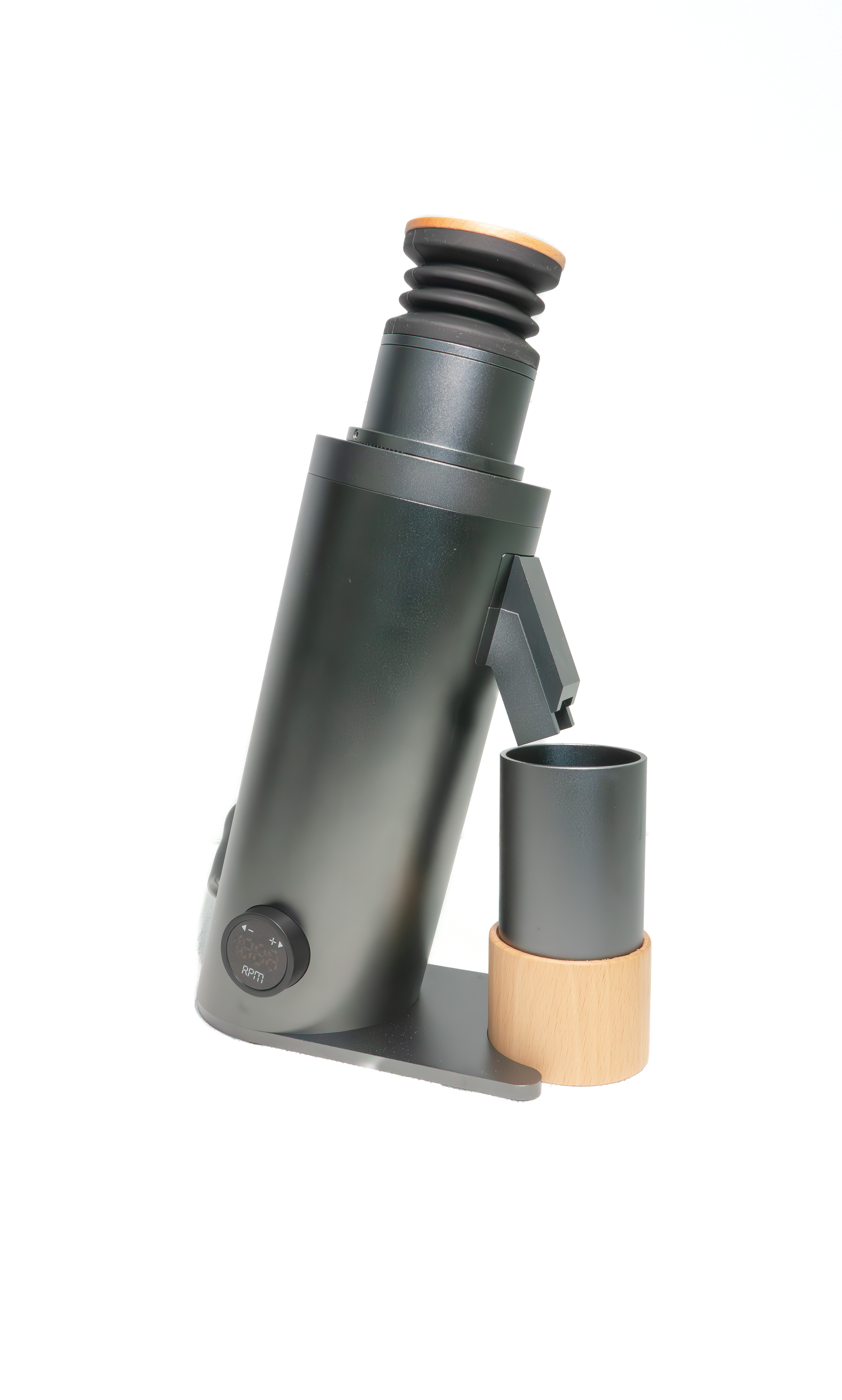 With the feature of a rubber bellow and wooden lid top, you can push air into the burrs and out of the grounds chute. This serves as an additional detail, on top of its streamlined design, to ensure minimal retention of grounds.