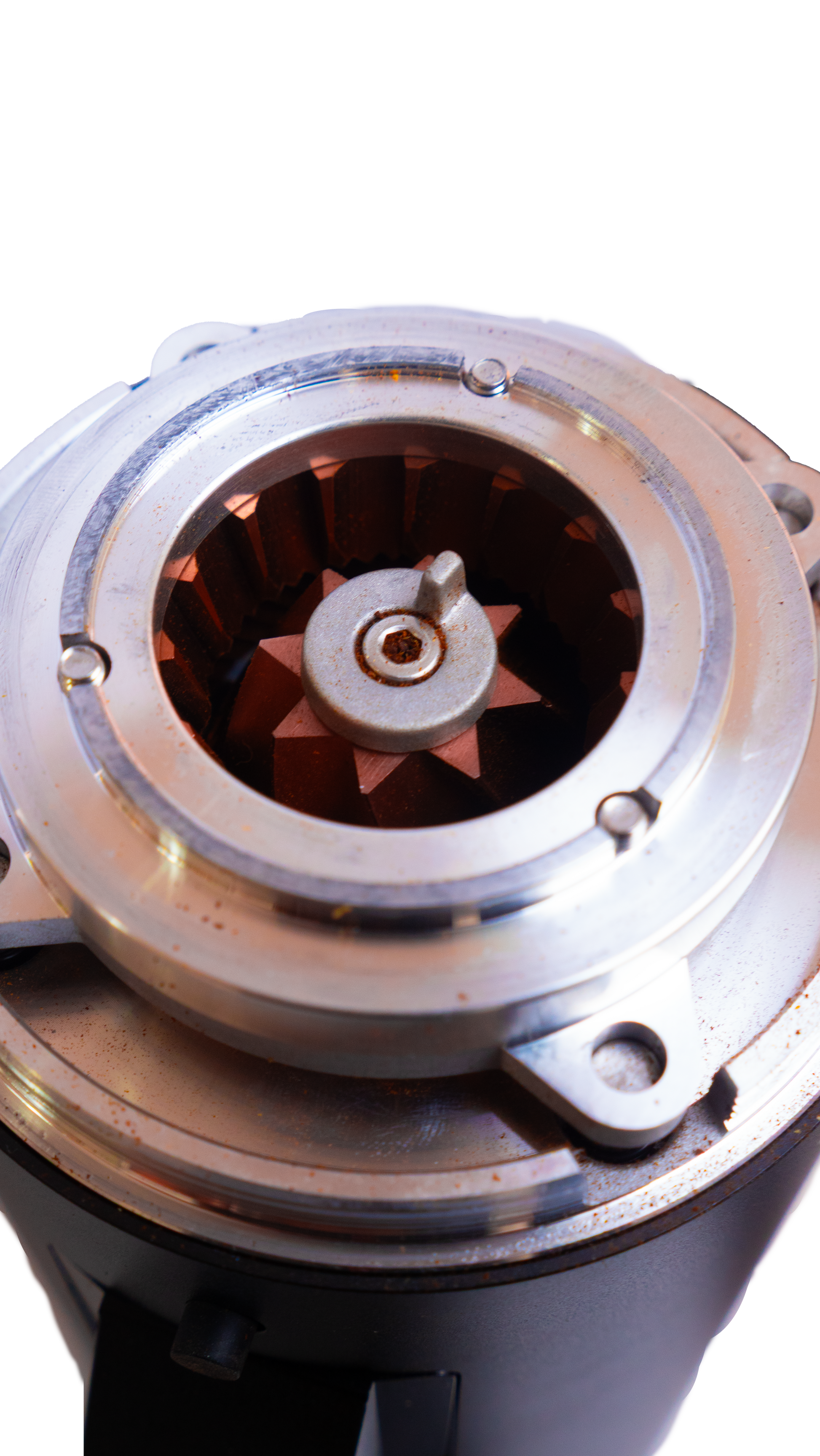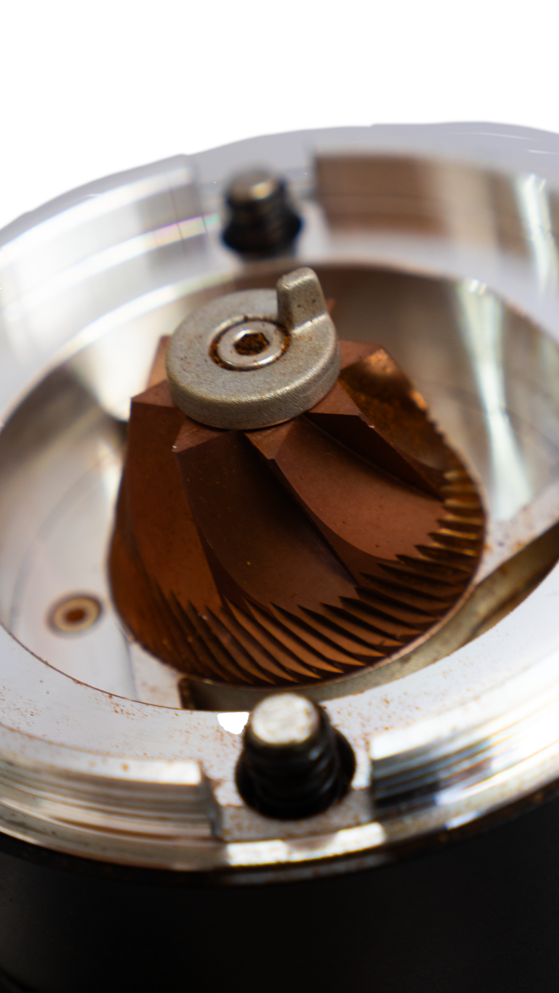 3. Disassemble top burr and scale ring to clean burrs.