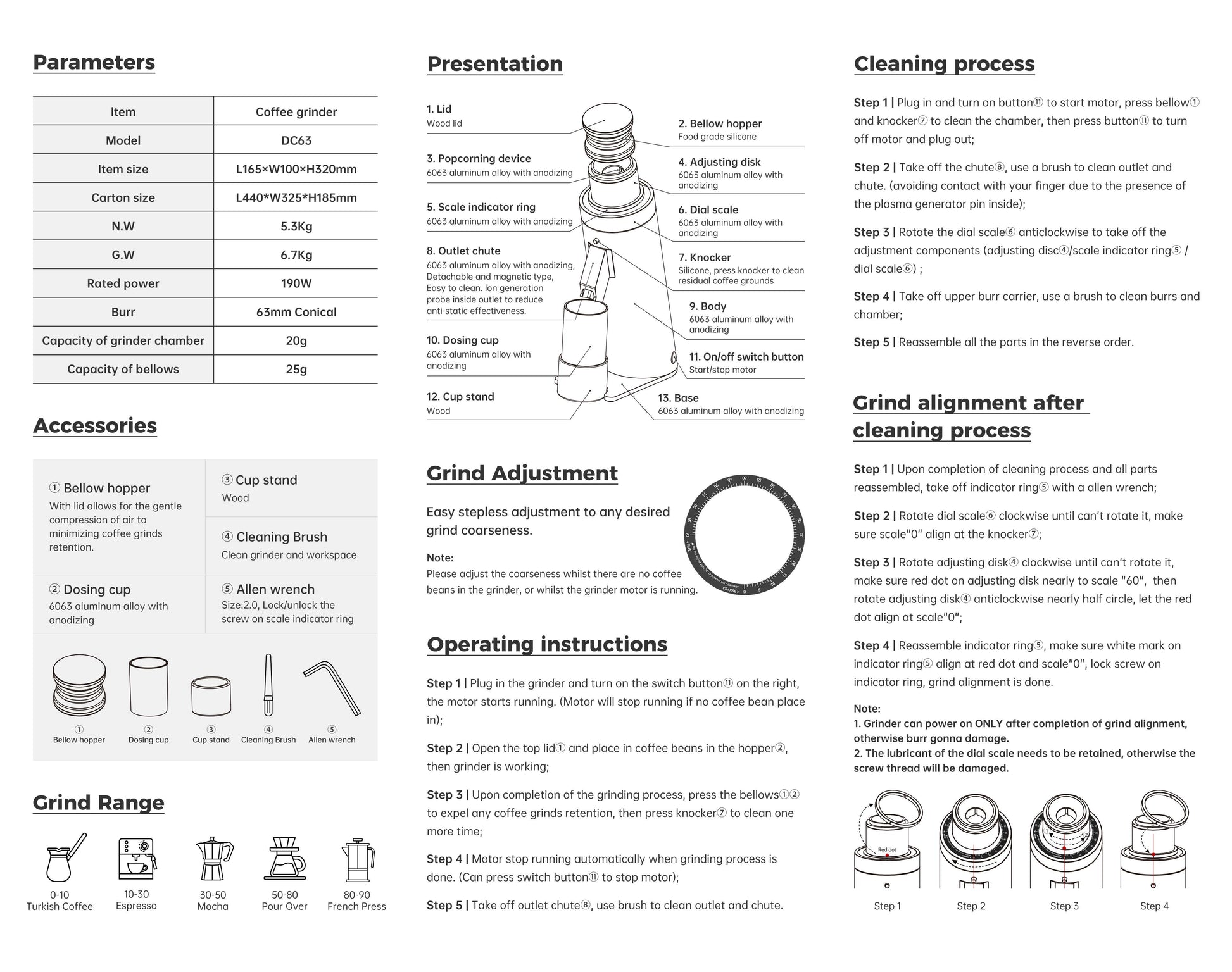 ⚠️ Important: Grinder must be realigned properly before use to avoid burr damage.