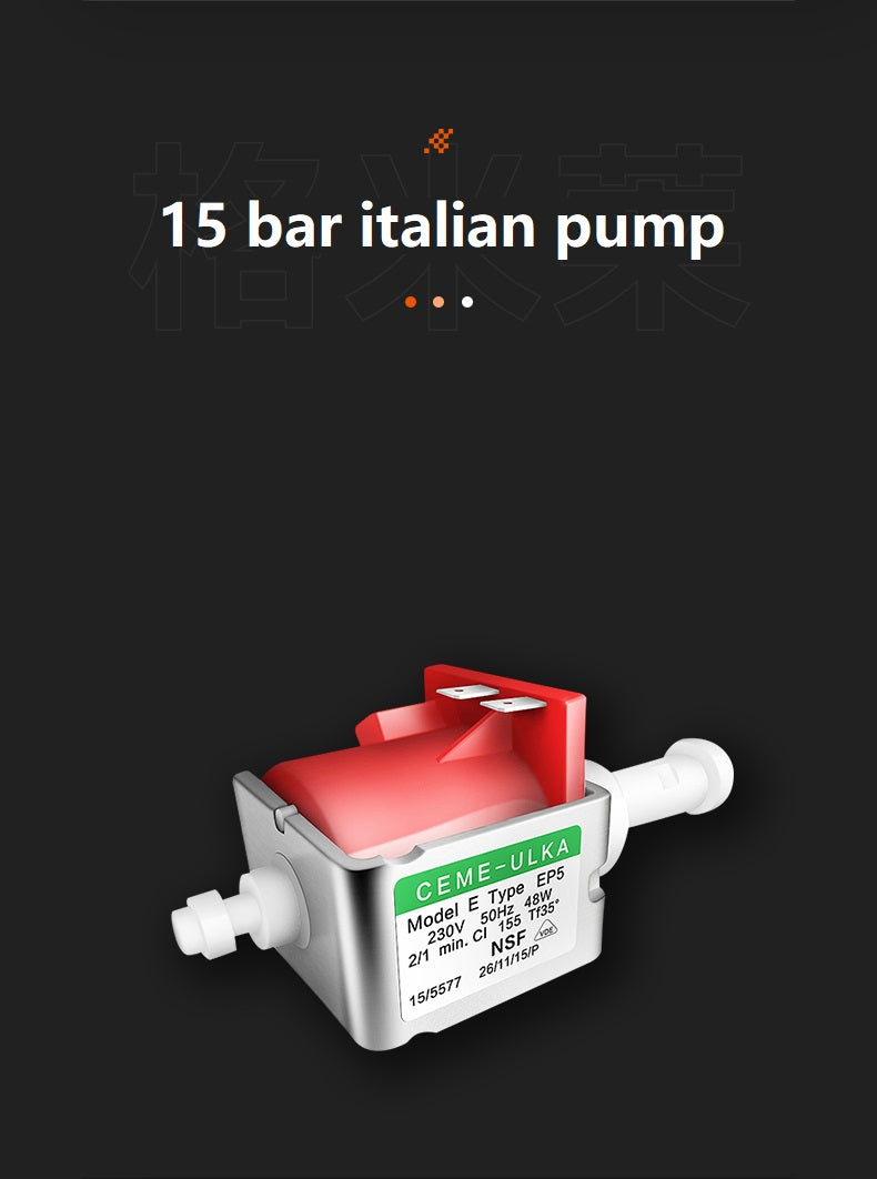 - High-Quality ULKA Pump: Utilizes Italy’s renowned ULKA pump, ensuring a steady 15 Bar pressure for ideal espresso extraction.