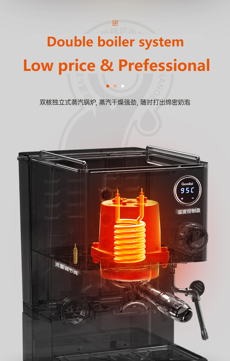 Most popular Dual Boiler with PID 58mm portafilter, and pump. Master the art of espresso with the Gemilai CRM3007L, a machine designed exclusively for coffee enthusiasts and professional baristas. Its unique dual boiler system allows for seamless coffee brewing and milk frothing, ensuring each cup is crafted with precision.